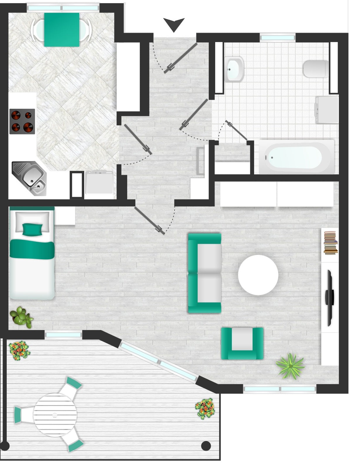 - Jede Wohnung verfügt über einen überdachten Balkon